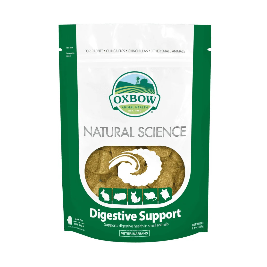High fiber support for your pet's digestive tract. Natural Science Digestive Support contains high fiber Timothy hay and various herbal ingredients to support the digestive health of rabbits, guinea pigs, chinchillas, rats, and other small pets. Chicory root supports the growth of beneficial bacteria in the GI tract while Ginger Root supports gastric motility.